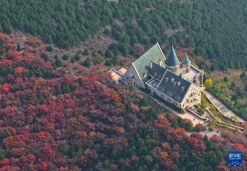 10月28日拍摄的天津市蓟州区一度假酒店秋景(无人机照片)。
