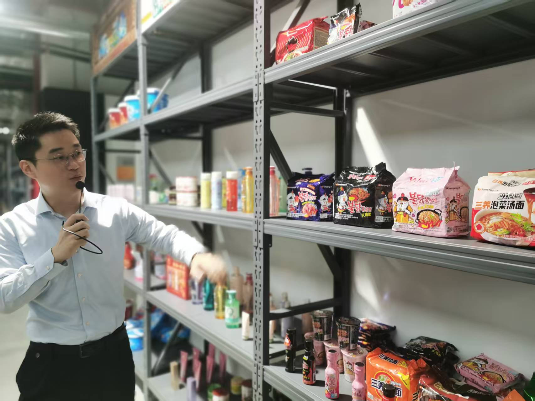 图为直播带货的三养火鸡面。劳动报记者罗菁摄影